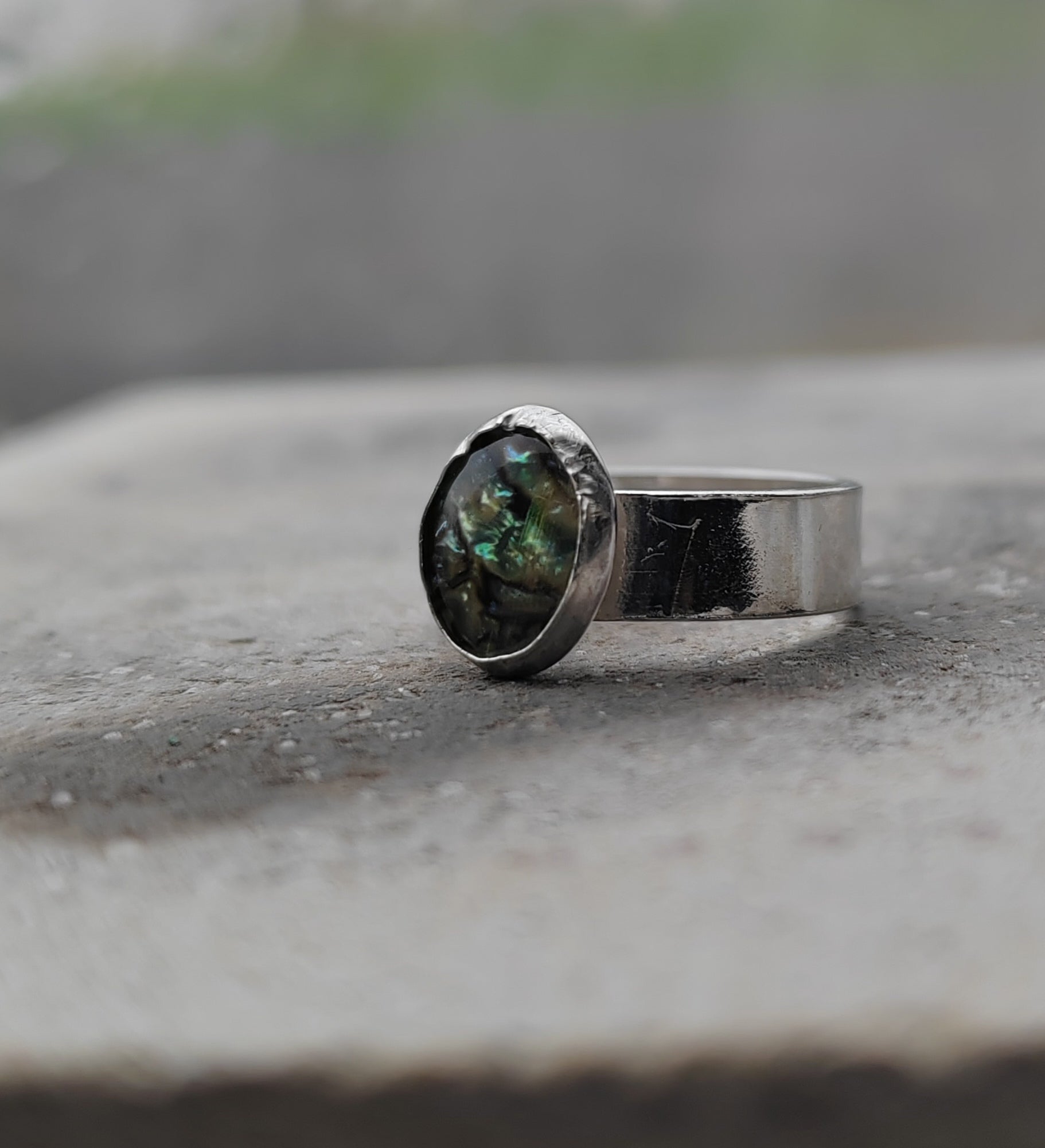 Opal sterling silver pinkie ring