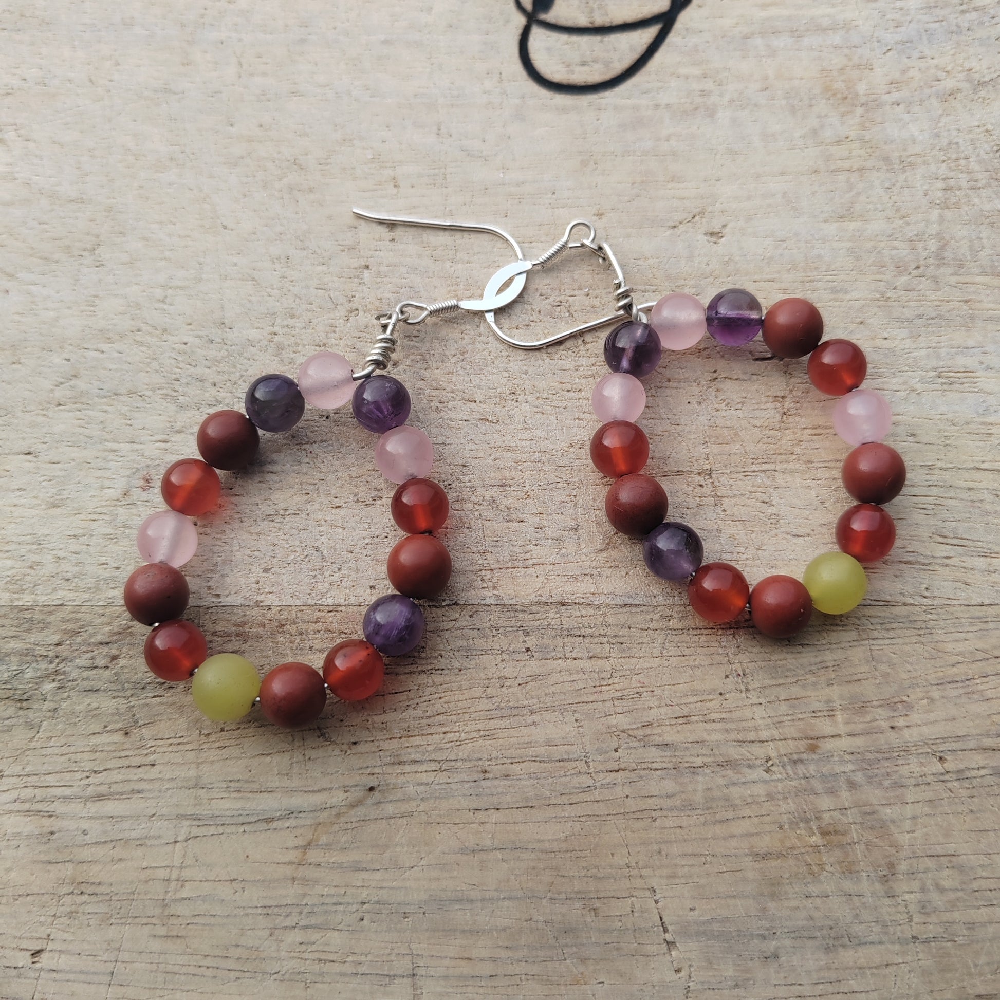 Amethyst, lemon jasper, rose quartz, red jasper and carnelian.